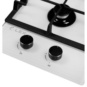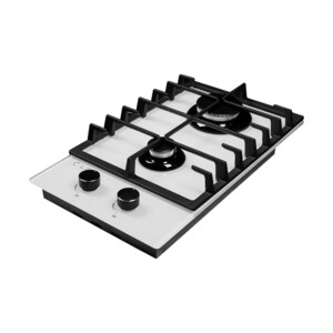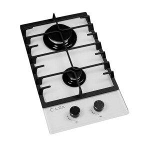 Газовая варочная панель шириной 300 мм изготовлена из закаленного стекла белого цвета и снабжена чугунными решетками. В модели используется механическое управление. Панель оснащена 2 конфорками, одна из которых повышенной мощности. Варочная панель также имеет электроподжиг и газ-контроль, прекращающий подачу газа, когда пламя случайно гаснет. Подходит для магистрального и баллонного газа.