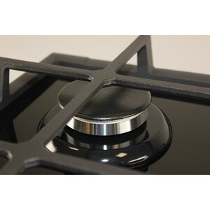 Газовая варочная панель шириной 400 мм изготовлена из закаленного стекла лаконичного черного цвета и снабжена чугунными решетками. В модели используется механическое управление. Панель оснащена 3 конфорками, одна из которых Wok с тройным рядом пламени для приготовления блюд азиатской кухни. Варочная панель также имеет конфорку быстрого нагрева, электроподжиг и газ-контроль, прекращающий подачу газа, когда пламя случайно гаснет. Подходит для магистрального и баллонного газа.