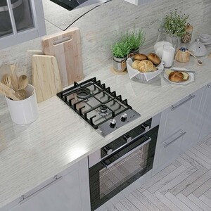 Газовая варочная панель шириной 300 мм изготовлена из нержавеющей стали, снабжена решетками с чугунным напылением. Модель имеет механическое управление, 2 конфорки, одна из которых повышенной мощности. Варочная панель также имеет электроподжиг и газ-контроль, прекращающий подачу газа, когда пламя случайно гаснет. Подходит для магистрального и баллонного газа.
