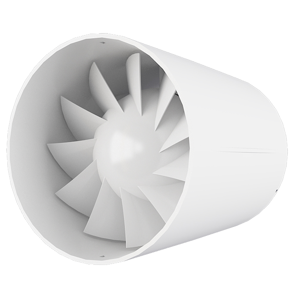 Инновационный бесшумный осевой канальный вентилятор для вытяжной или приточной вентиляции с низким уровнем шума и энергопотреблением. Корпус вентилятора может быть полностью установлен внутрь вентиляционного канала соответствующего размера.