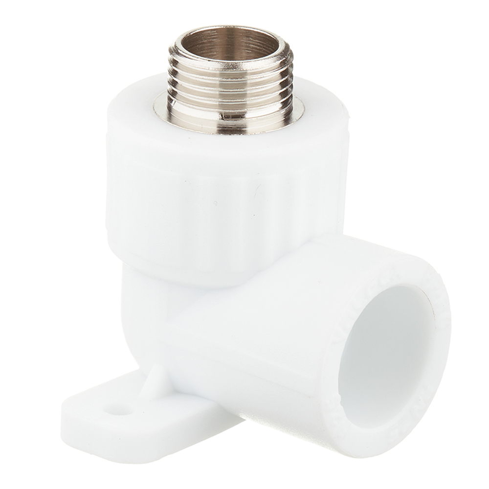Применяется в системах холодного и горячего водоснабжения в местах где необходимо жесткое крепление фитинга. Предназначена для подсоединения к полипропиленовому трубопроводу сантехнического смесителя или поливочного крана, а также других элементов инженерной системы с резьбовым подключением. Представляет собой комбинированное изделие из полипропиленового фитинга внутри которого установлена никелированная латунная закладная, круглого сечения с поперечными проточками и торцевыми выступами увеличивающими поверхность сцепления с полипропиленом.