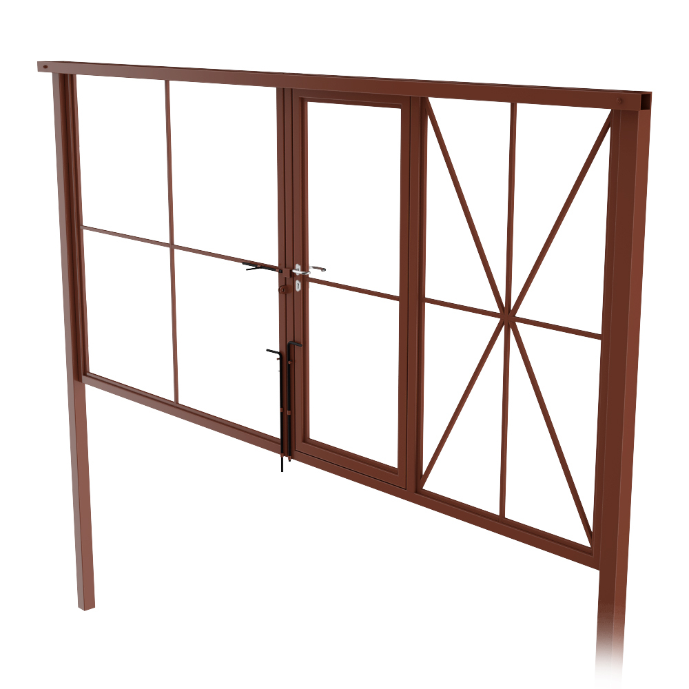 Ворота распашные каркас со столбами 4х1,85 м с калиткой коричневые RAL 8017