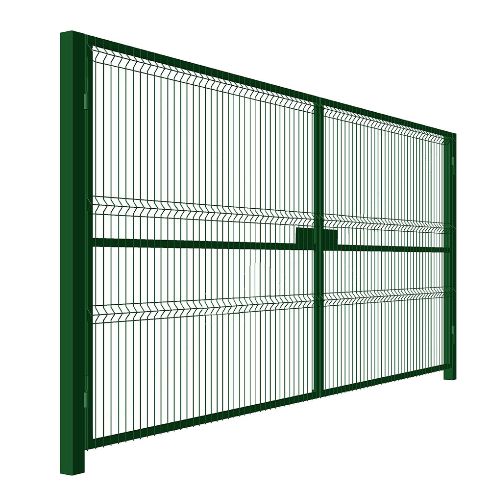 Ворота распашные с панелью 3D и столбами Оптима 4х2 м зеленые RAL 6005