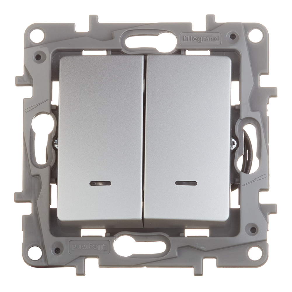 Выключатель Legrand Etika двухклавишный встраиваемый алюминий с подсветкой (672404)