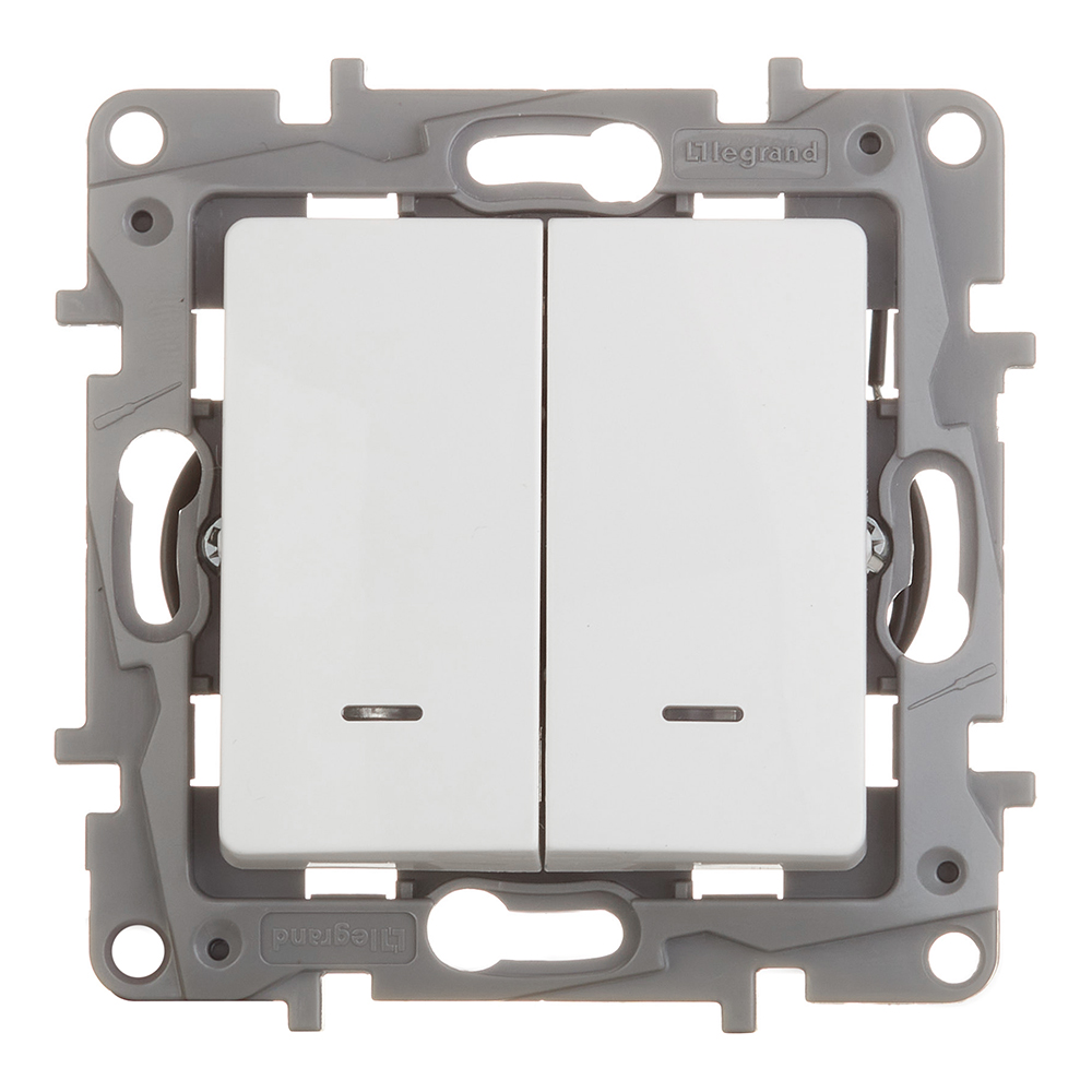 Выключатель Legrand Etika двухклавишный встраиваемый белый с подсветкой (672204)