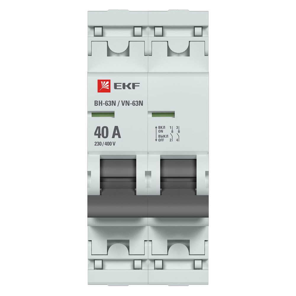 Выключатель нагрузки EKF PROxima ВН-63N 2Р 40А 230 В на DIN-рейку (S63240)