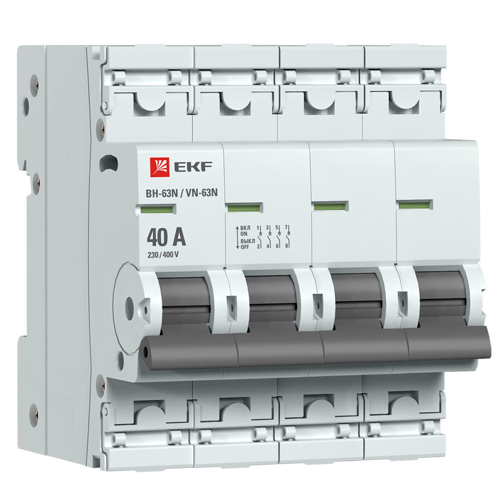 Выключатель нагрузки EKF PROxima ВН-63N 4Р 40А 400 В на DIN-рейку (S63440)