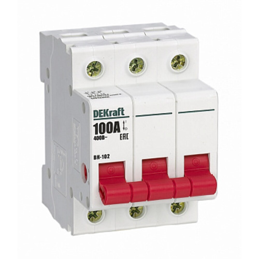 Выключатель-разъединитель Dekraft ВН-102 3P 100А 400 В на DIN-рейку (17012DEK)