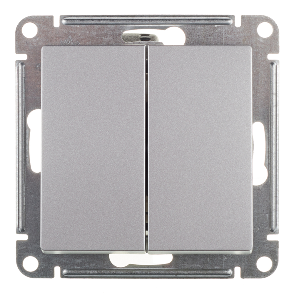 Выключатель Systeme Electric AtlasDesign двухклавишный встраиваемый алюминий (ATN000351)