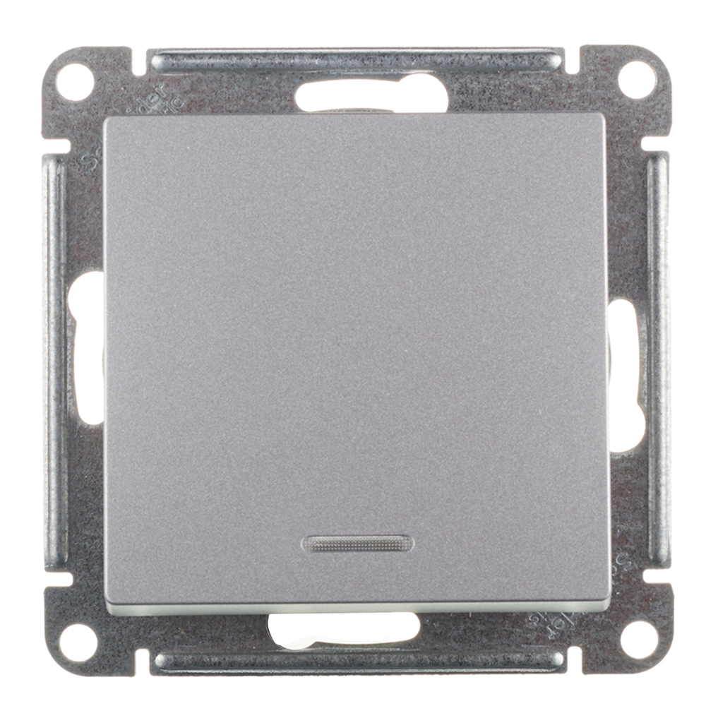 Выключатель Systeme Electric AtlasDesign одноклавишный встраиваемый алюминий с подсветкой (ATN000313)