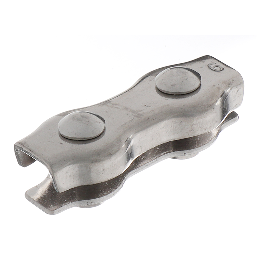 Зажим Duplex для сращивания стальных тросов, канатов размером 6 мм. Также он применяется для создания петель на концах тросов. Двойной зажим Duplex гораздо прочнее при сращивании одинарного Simplex. Независимо от типа, рекомендуется устанавливать не менее двух стальных зажимов.