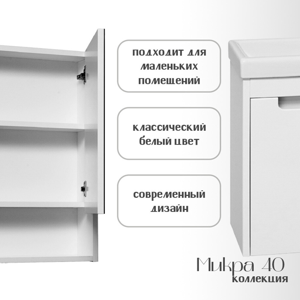 Зеркальный шкаф Runo Микра 40х65х12 см белый