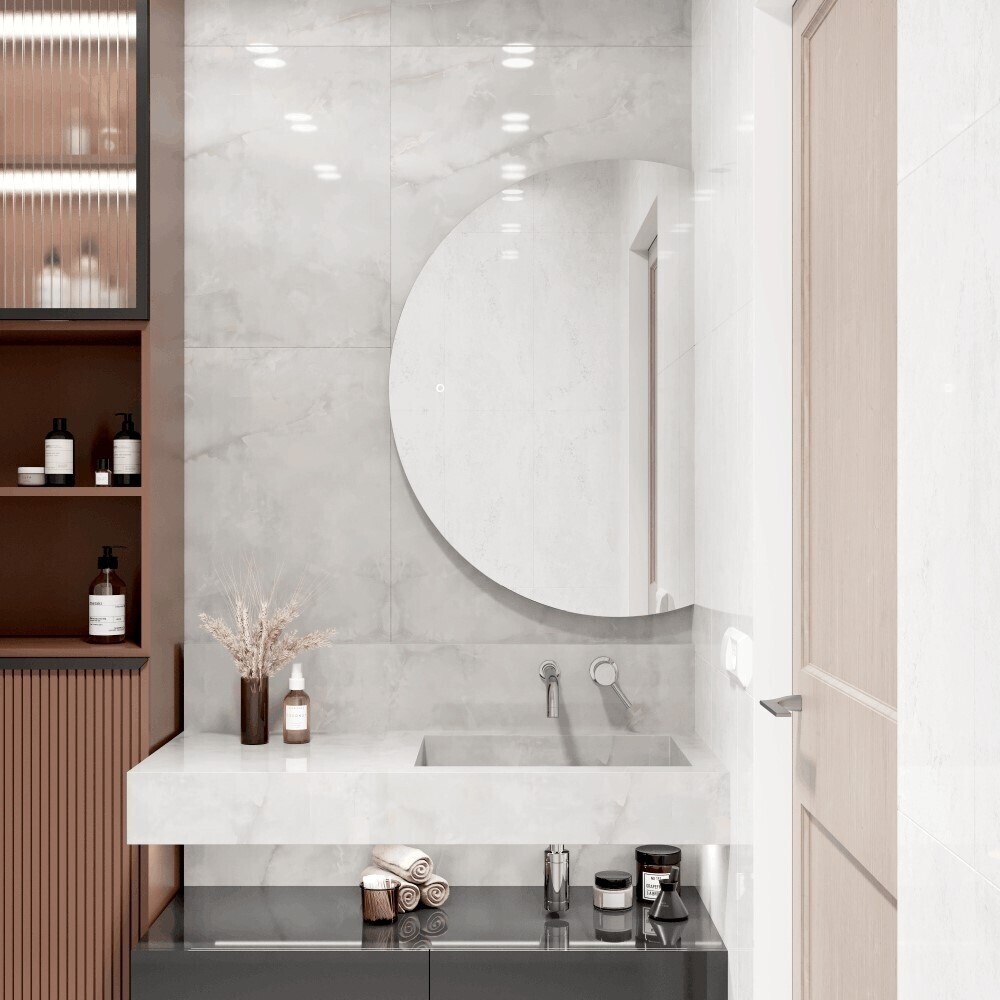Нежная ореольная подсветка нейтральной температуры (4000K) создает идеальный баланс между теплым и холодным свечением, обеспечивая естественное освещение без искажения цветов – оптимальное для нанесения макияжа, бритья и ухода за кожей.
