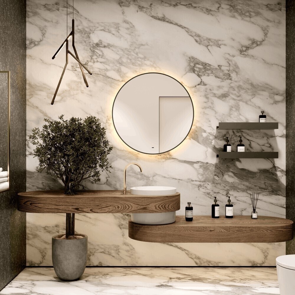 Стильная матовая черная окантовка методом УФ-печати подчеркивает безупречную геометрию круга и гармонично вписывается в современный интерьер. Влагостойкое исполнение и инновационная EVA-подложка на задней стороне зеркала обеспечивают дополнительную защиту от …