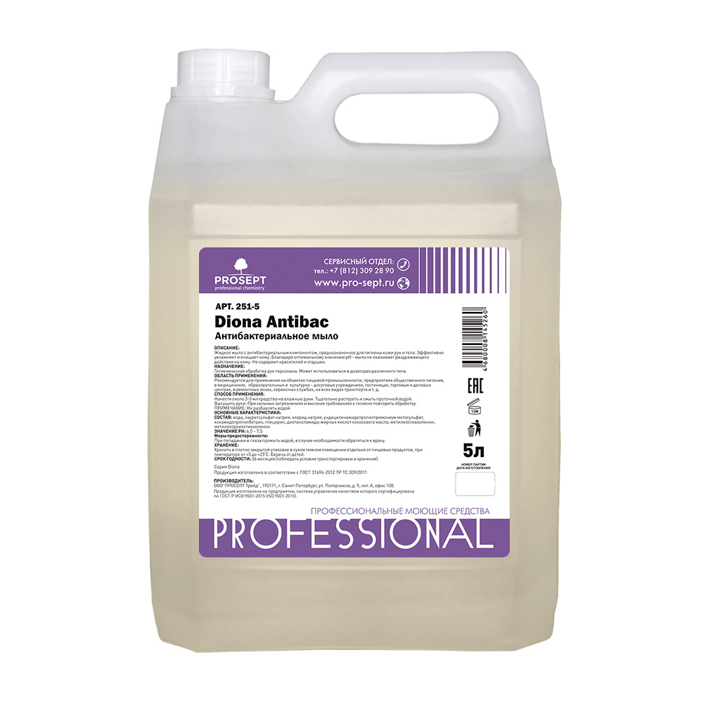 Предназначено для мытья рук. Содержит антисептический реагент, который убивает бактерии на коже и в дальнейшем замедляет их рост.
